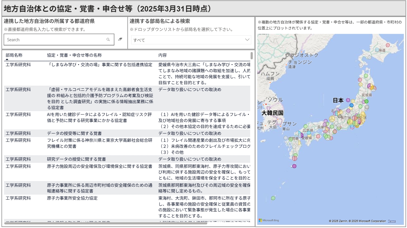 このページでは、本学と地方自治体(日本国内のみ)との間で締結した協定・覚書・申合せ等のうち、2025年3月31日現在で有効なものを掲載しています。