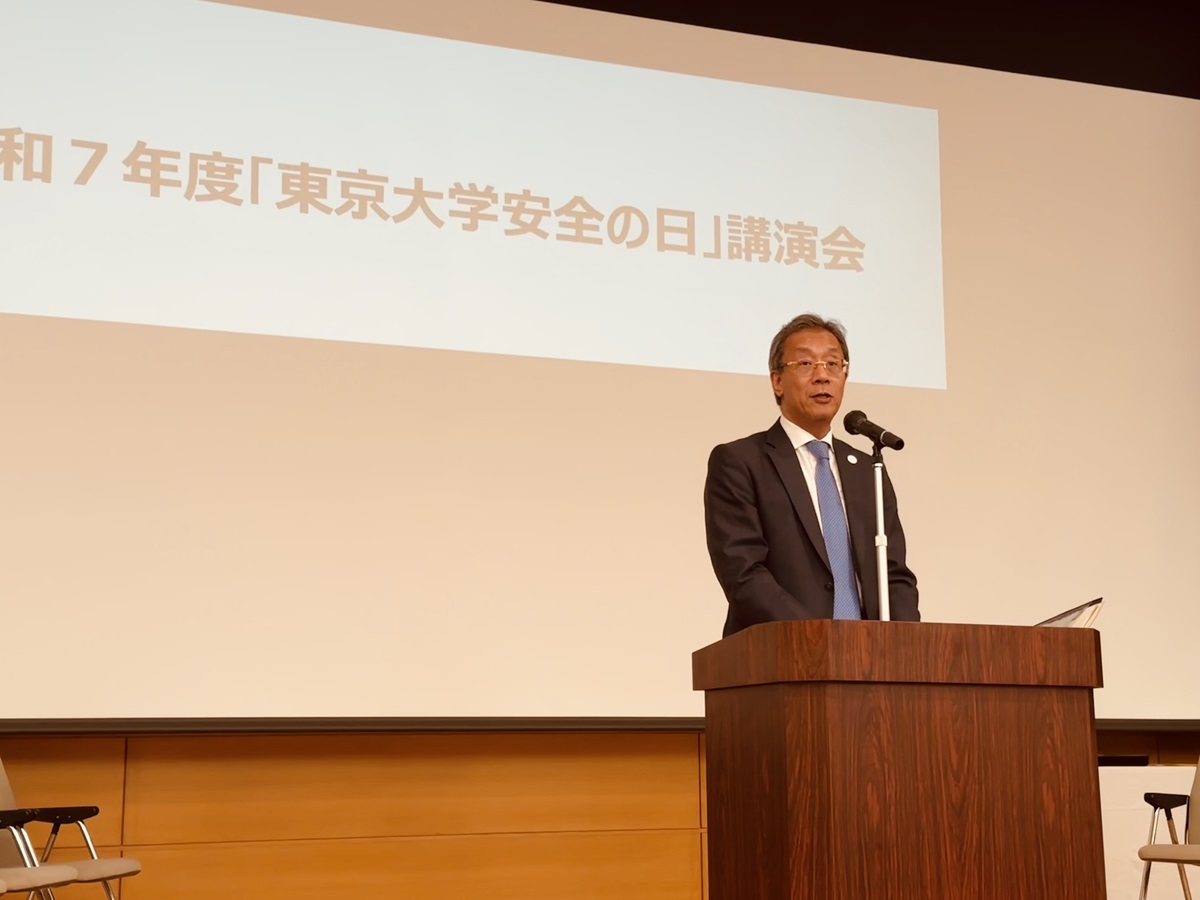 We invited lecturers from inside and outside UTokyo to speak under this year’s theme of safety and risks related to outdoor activities and their countermeasures. There was also a ceremony in which awards were presented to winners of the UTokyo Environment, Health & Safety Slogan Contest.As the university continues to expand the scope of its activities, I would like to once again review the safety awareness of all members and further enhance the safety and health initiatives at UTokyo.