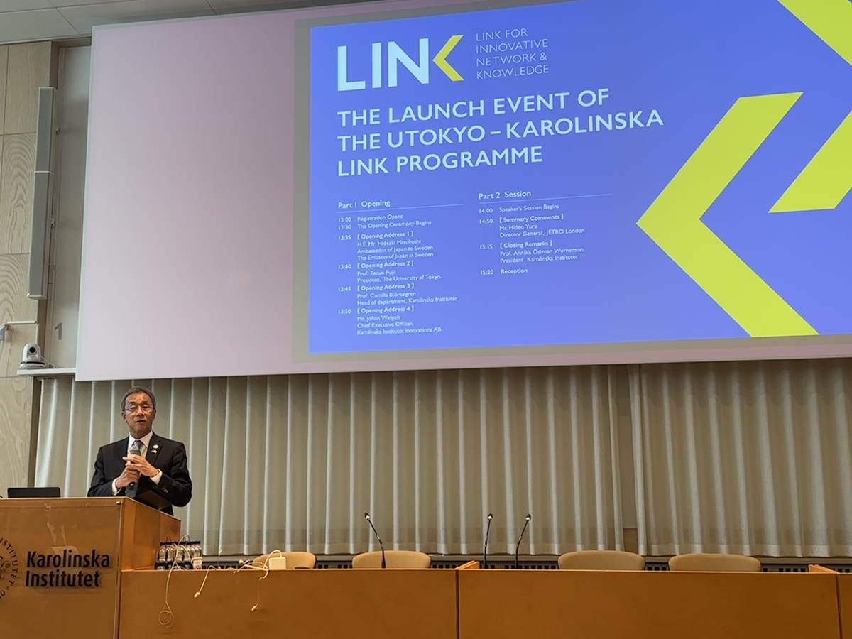 I attended a launch event of the international collaboration program between UTokyo and Karolinska Institutet of Sweden. The program is called “The University of Tokyo - Karolinska Institutet LINK (UTokyo-KI LINK).” UTokyo has been committed to advancing world-class research by building overseas research hubs in collaboration with international institutions. The UTokyo-KI LINK Lab, located within Karolinska Institutet, has been recognized as the first overseas hub of our “international collaborative research labs.”
