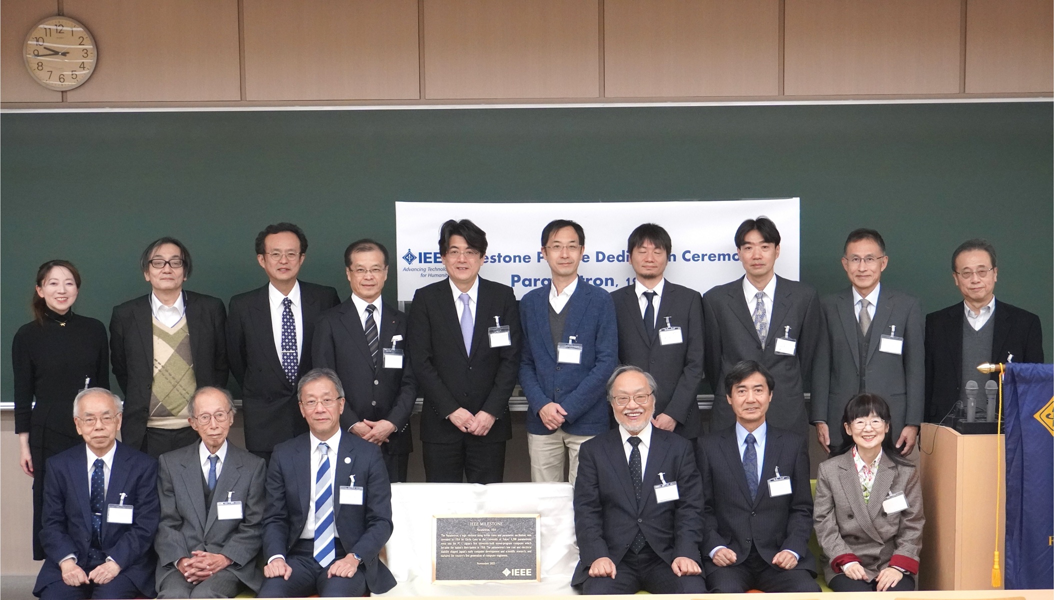 I attended a ceremony to present the certificate plaque for the “IEEE Milestone, Parametron 1954.” The IEEE Milestone program recognizes historically significant innovations in the fields of electrical and electronic engineering. To qualify, an innovation must be at least 25 years old and must have had a major global or regional impact. The Institute of Electrical and Electronics Engineers (IEEE) honors achievements resulting from these innovations, which have made substantial contributions to the development of society and industry, and it seeks to preserve their historical significance for future generations.