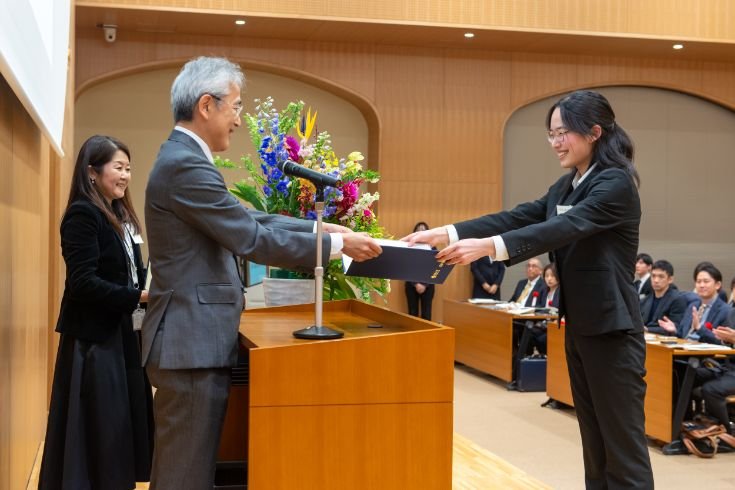 The valedictory address was delivered by Mr. Yoshinobu Nakamura (Faculty of Economics), who reflected on four essential qualities of global leadership: the courage to embrace the unknown, the capacity for empathy, a strong sense of commitment to goals, and the willingness to challenge personal limits.