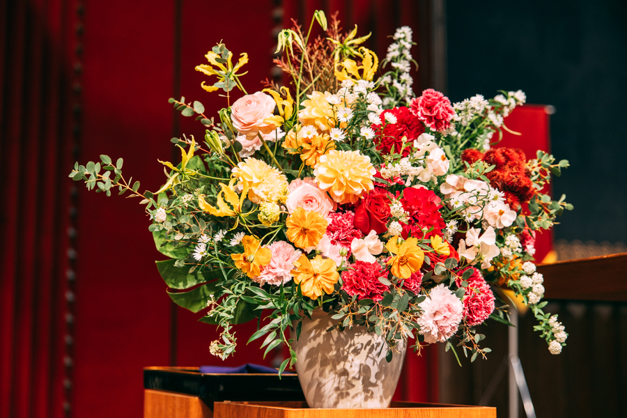 The ceremony was held three times. Accompanied by the University of Tokyo Orchestra’s performance of “Eine Kleine Nachtmusik G major, K.525” by Wolfgang Amadeus Mozart, the president, the executive vice presidents, deans of the Graduate Schools, the directors of University Institutes and special guest Mr. KUNIBE Takeshi, president of the UTokyo Alumni Association, ascended to the stage in their academic gowns, and the ceremonies began.