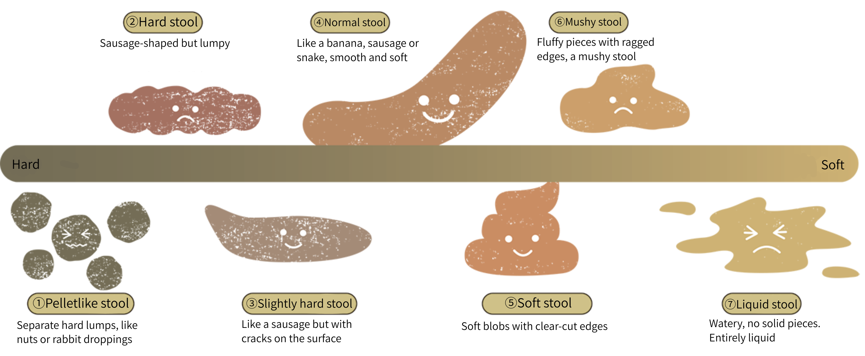 Various types of laxatives are available, such as stimulant and saline types, which are used to treat constipation. However, there are no guidelines on which laxative to administer for which patient. Nurses on the front lines rely on experience to adjust the dosage and timing of the medication. They care for patients, worrying about their well-being and seeking optimal bowel movements through trial and error. What kind of care is needed for patients to pass ideal stools? That is what I want to clarify and help understand. The Bristol Stool Chart is a scale used to assess stools, based on their consistency, shape, color and other factors. We are seeking to establish care practices that facilitate banana- or sausage-shaped stools, which are considered ideal.