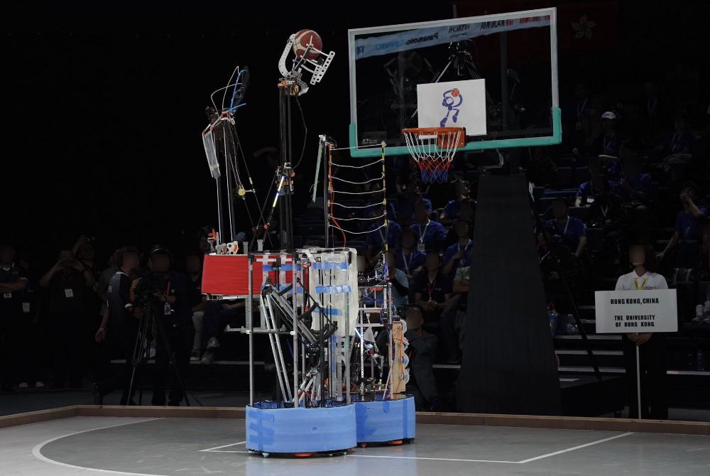 今大会の競技は「ロボットバスケットボール」で、各国、地域の代表チームが高い技術力と創意工夫で作り上げたロボットで競技に挑みました。東京大学RoboTech は14の出場チームの中を勝ち上がり、香港のチームと対戦した決勝戦では終盤で見事なダンクシュートで逆転し、劇的な展開で優勝を決めました。