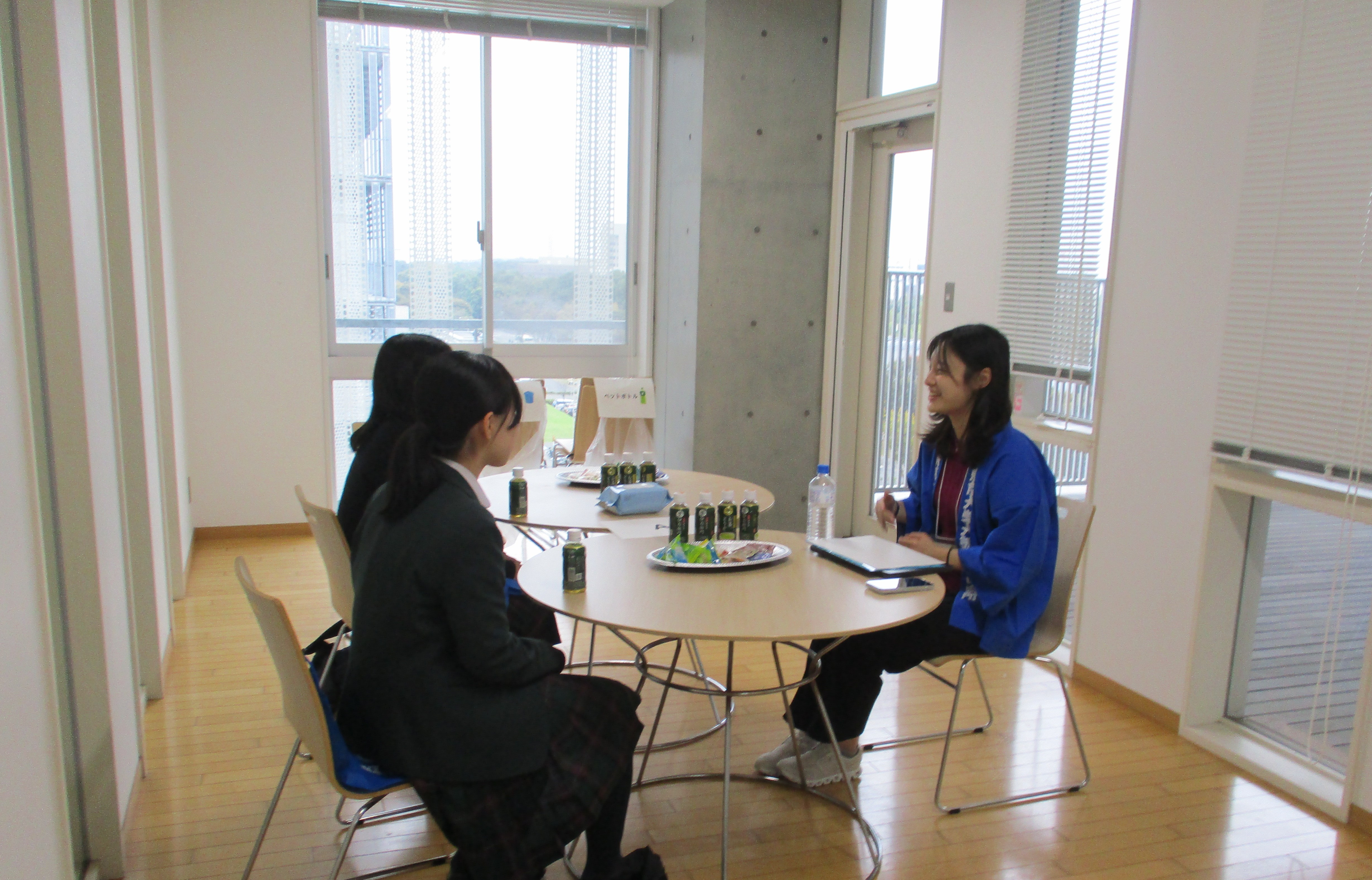後半の先輩を囲んでのティータイムでは、用意されたお菓子を食べながら進路選択、大学生活、就職活動など様々なトピックについて、相談会を行いました。ここでは3名のパネラーに加えて学生7名が多くの質問に答えました。