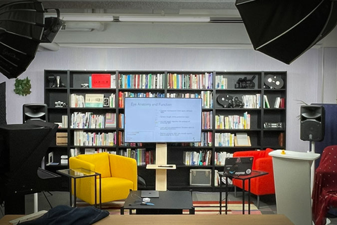 この「スタジオ」は、国内外を問わないZOOM会議の打ち合わせ、ゼミ形式のハイブリッドウェビナー、伝達力ある映像プレゼンテーション、対談、インタビューまで、教育コンテンツのすべてをアップデートする装置です。私たちはここから100年後まで生きる大学発の高解像度コンテンツを作ってゆきます。