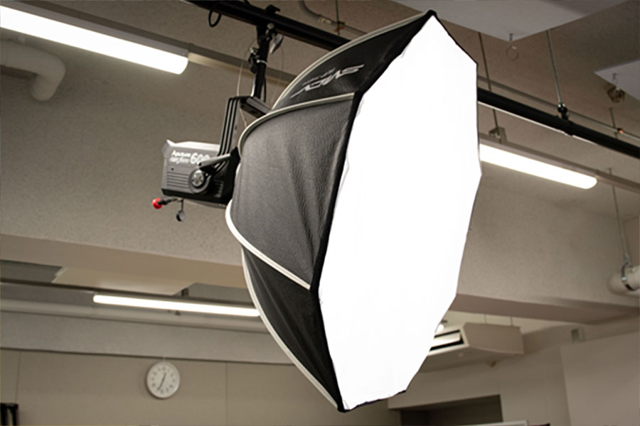照明設備は600wのLEDライトを常設。TVスタジオレベルの照明を技量を問わず使えます。