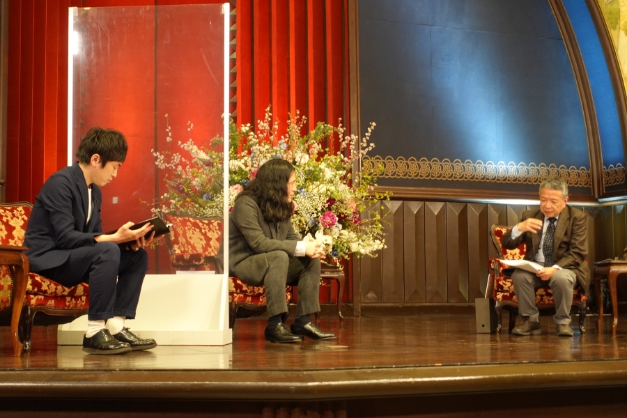 安田講堂からライブ配信されたこの対談では、言葉の使い方に始まり、スマートフォンやSNSからひも解くコミュニケーションの本質や、現代において我々が持つべき「言葉力」について、論文やコント・小説を書くそれぞれの立場から意見が交わされました。視聴者からの質問を受けるコーナーでは、「三密」といった現代の流行語に関する言及もあり、1時間の対談は大変盛り上がりました。