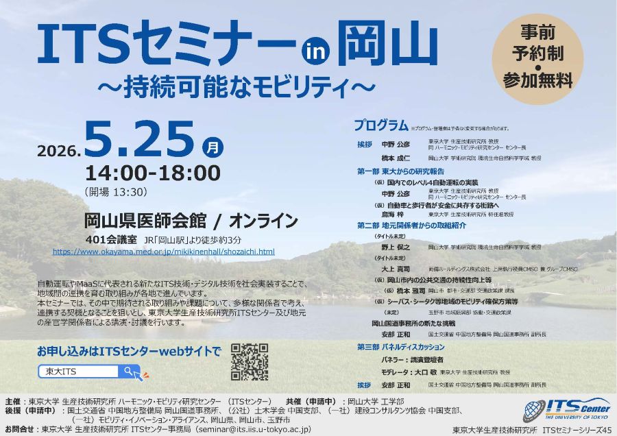 東大生研ITSセミナーシリーズ45「ITSセミナー in 岡山」