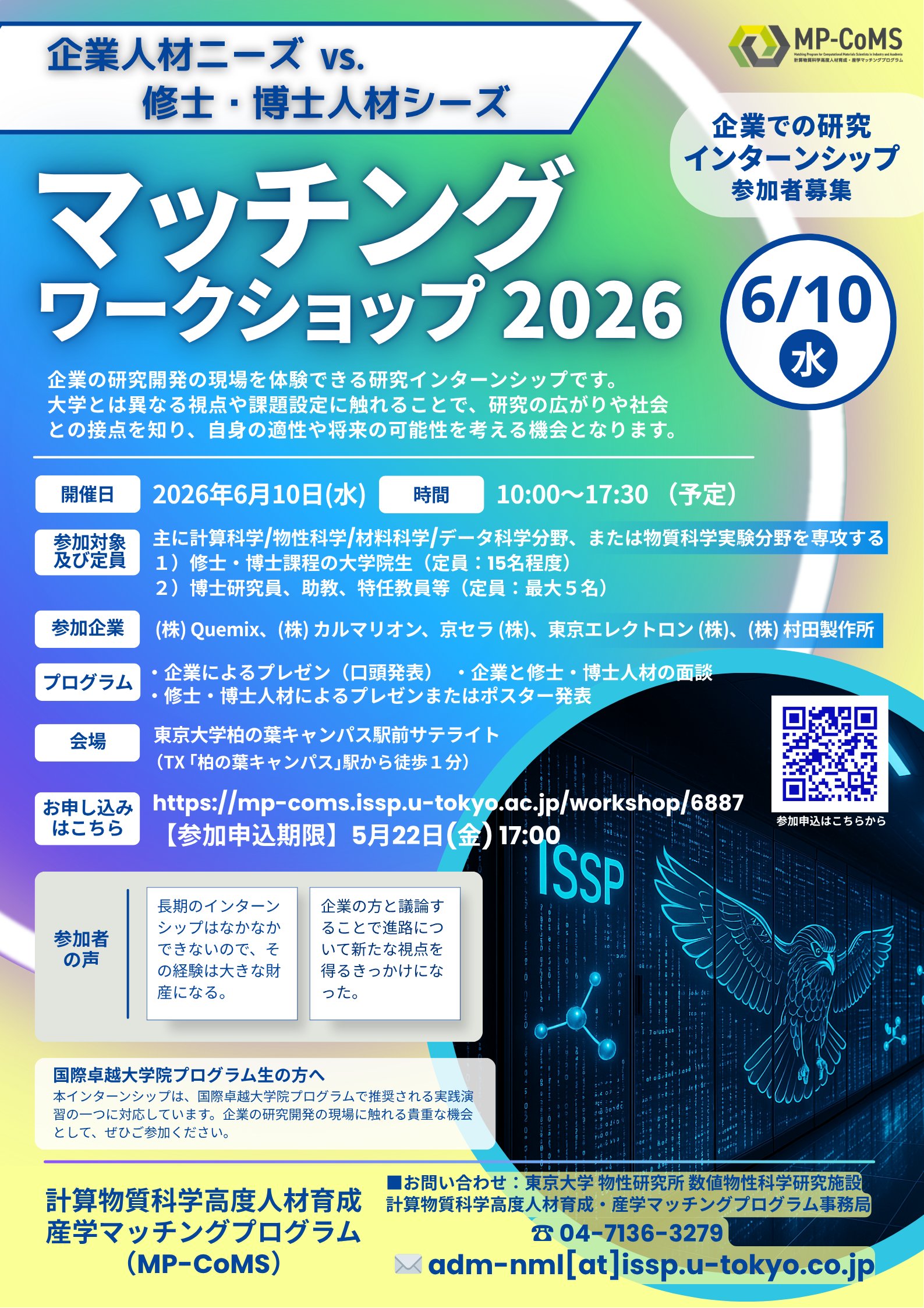 物性研 企業人材ニーズvs修士・博士人材シーズマッチングワークショップ2026