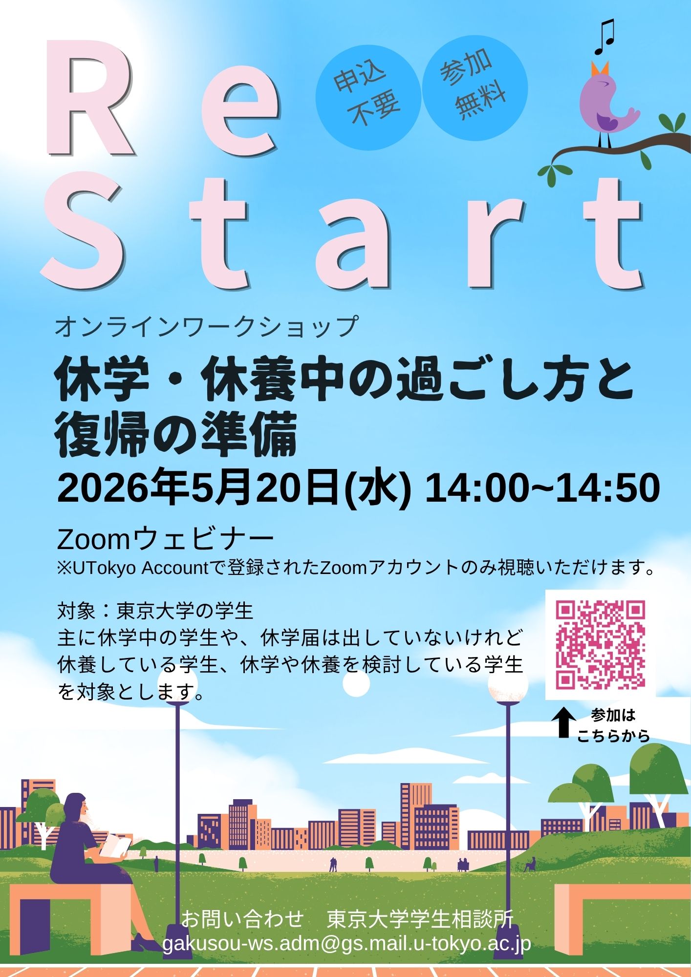 主に休学中の学生や、休学届は出していないけれど休養している学生、休学や休養を検討している学生を対象に、オンラインワークショップ「休学・休養中の過ごし方と復帰の準備」を開催します。