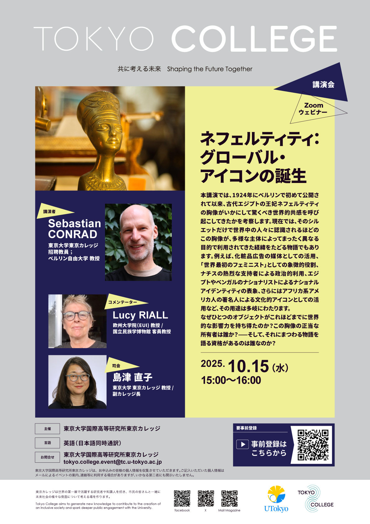 東京カレッジ講演会「ネフェルティティ:グローバル・アイコンの誕生」