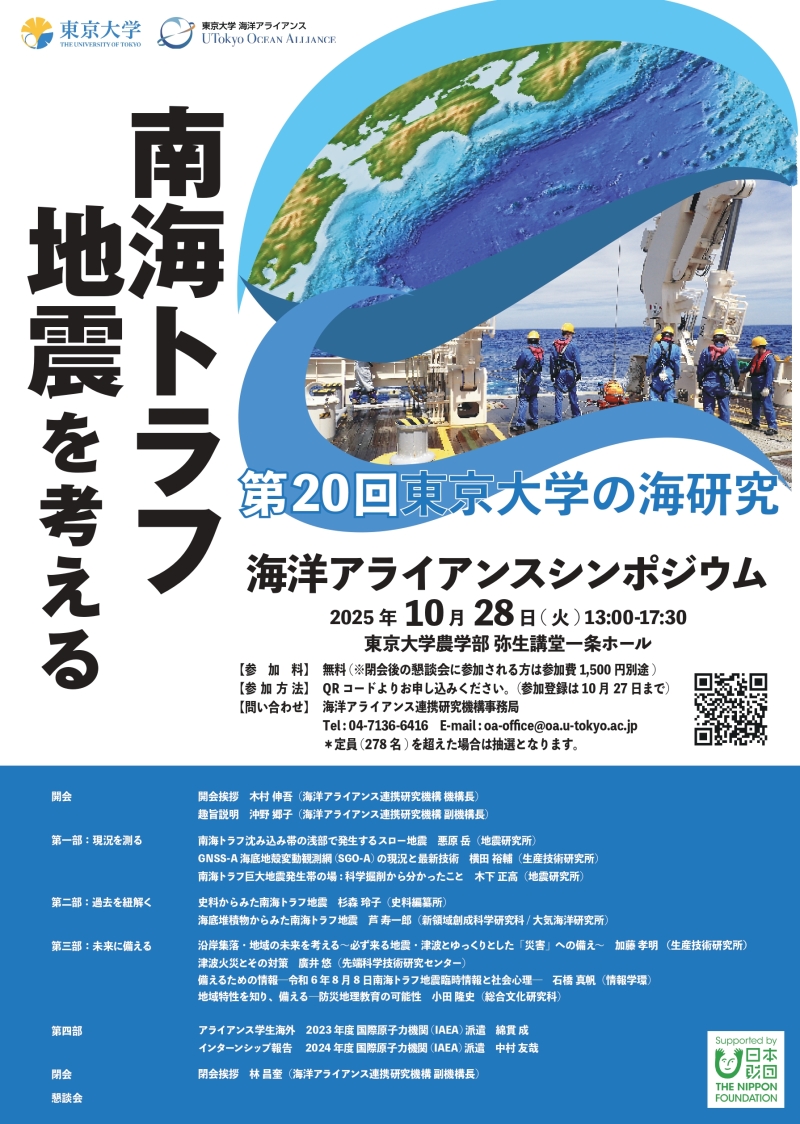 第20回東京大学の海研究「南海トラフ地震を考える」開催のご案内(2025/10/28(火))