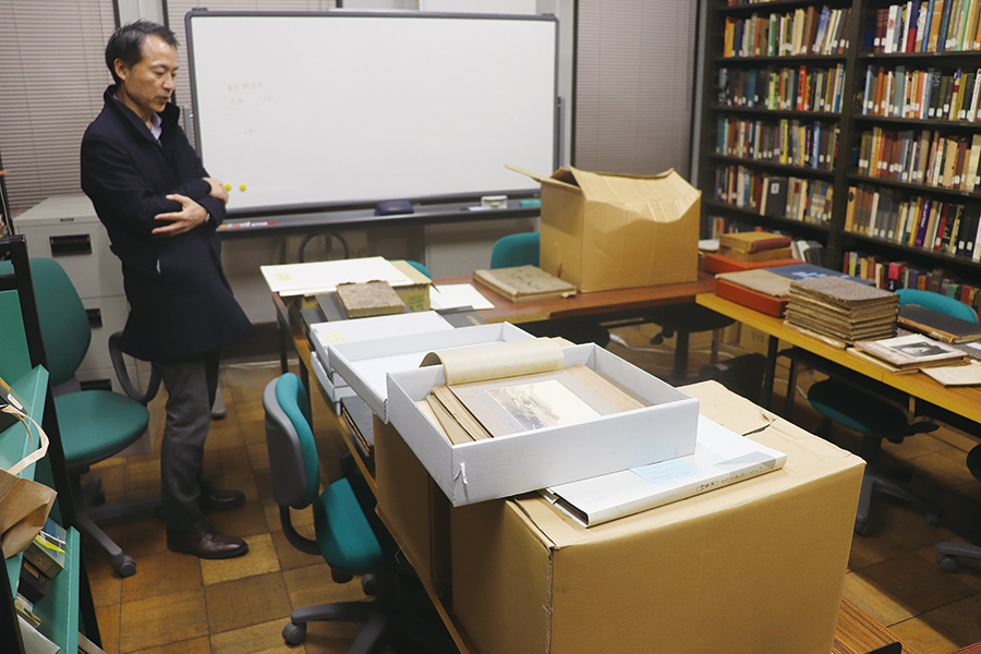 日本人で初めて東京帝国大学英文科の教授を務めた市河三喜が集め始め、歴代の教員が拡充してきた数多の関連資料が、法文2号館の書庫に収蔵されています。「未整理のものも多々。なんとか本格的な文庫に成長させたいのですが……」(阿部)