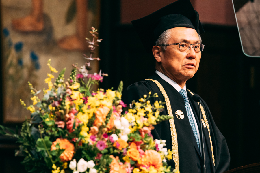このような時代に、世界を動かすリーダーとなる皆さんには、自分の価値観に囚われた近視眼的な思考に陥ることなく、溢れる情報の波の中から物事の本質を見抜く力、そして、自分とは異なる価値観を理解する力を養い、広い視野で日本や世界を良い方向に導いていただきたいと思います。