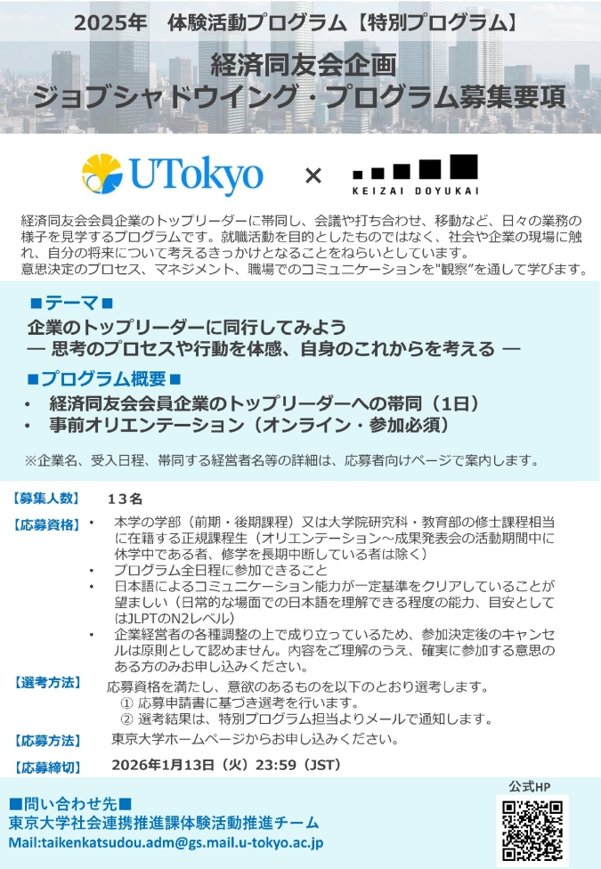 公益社団法人経済同友会を受け入れ先とする企画です。