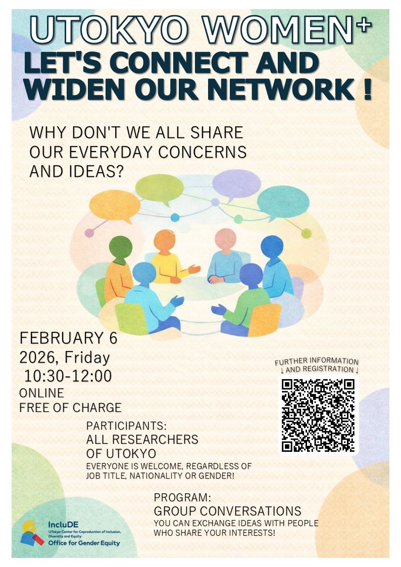 The Office for Gender Equity has been holding the "UTokyo Women+ Let's Create a Network of Researchers" meetings since AY2014 with the main purpose of supporting the career development and networking of female researchers.